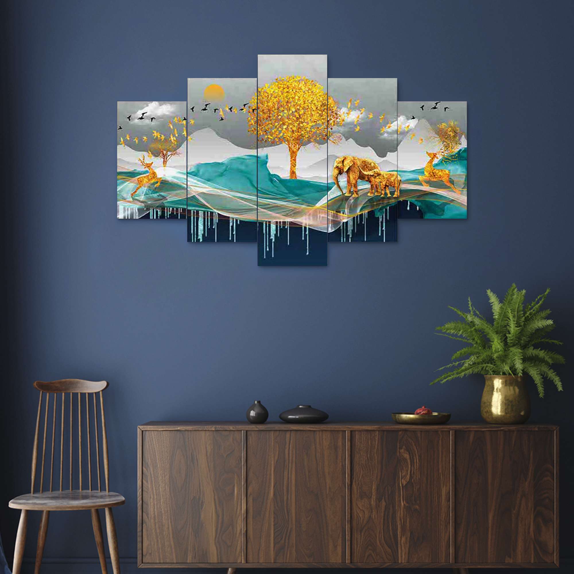 Nature Set of Five 3D Framed Paintings for Wall Decoration – Ideal for Home, Living Room, and Bedroom (125 x 60 CM)